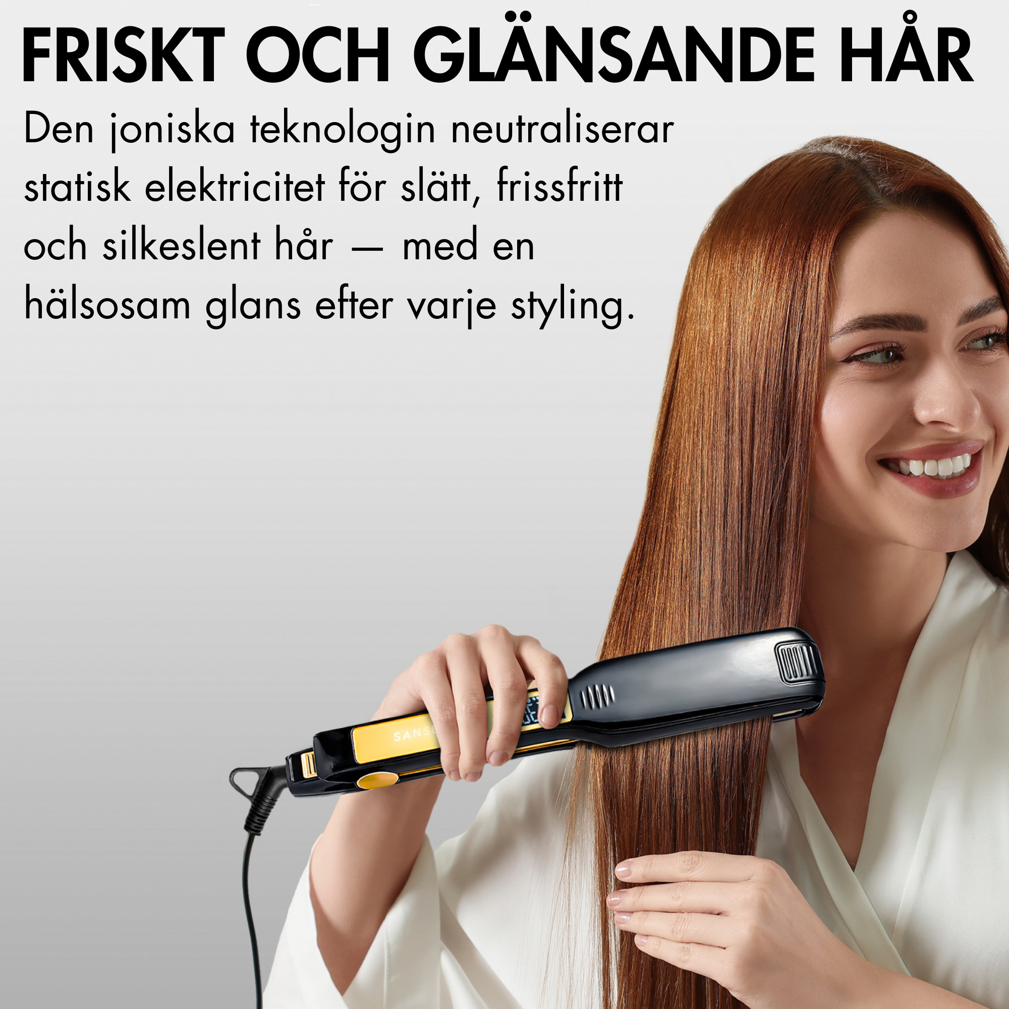 {"type":"root","children":[{"type":"paragraph","children":[{"type":"text","value":"Plattången använder avancerad ION-teknik som avger negativt laddade joner för att skydda ditt hår mot värme och minska friss. Detta gör att ditt hår behåller sin naturliga glans och hälsa."}]}]}